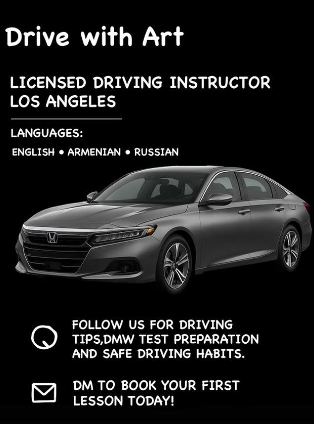 Looking for a driving instructor who truly cares about your success? We are helping students drive safely & confidently in Los Angeles. Languages: English • Armenian• Russian