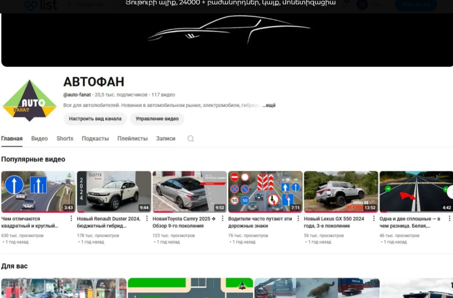 YouTube Channel for Sale - Yerevan, Armenia